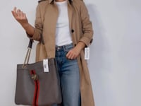 -This Aquascutum Beige Checkered Belted Trench Coat is a staple in anyone’s wardrobe this rainy winter season.