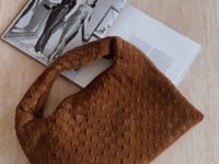 -This is the Bottega Veneta Intrecciato Medium Hop Suede Shoulder Bag in Tan, a piece that epitomises practicality and crafted for the most discerning clientele.