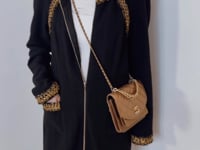 -This iconic Chanel Cambon wool dress epitomises luxury with its classic black base adorned with intricate gold lurex braiding.