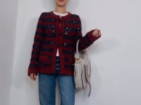 -This is the Chanel Charcoal Red Cashmere and Alpaca Cardigan, a luxurious knit perfect for the season