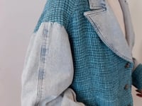 -This is the Chanel Peacock Blue Silhouette Woven Denim Jacket, a striking and contemporary Chanel piece