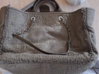 -This is the Chanel Deauville Tote on Khaki with silver hardware