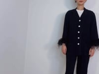 -It is adorned with feather accents on the cuffs of the sleeves and trouser cuffs to give a chic and elevated look of glamour.
