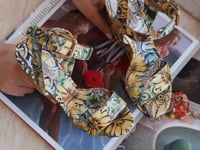 Iconic Dolce & Gabbana wedges with the signature Sicilian print in a shades of yellow and green with a buckle ankle strap in a gold hardware.