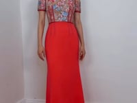 -The sheer embroidered top is thoughtfully paired with a nude underlay for elegant coverage, whilst the voluminous neon pink skirt offers freedom of movement without compromising on glamour.