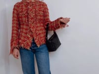 -This is the gorgeous Junya Watanabe jacket, in a stunning red-toned colourway and it’s a Chanel style jacket made cooler.