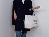 -This double-breasted silhouette features distinctive tonal marbled buttons that add an artistic touch to timeless tailoring.