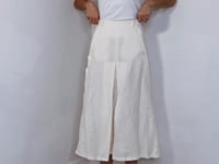 -This classy Linen Midi skirt is from MaxMara, featuring button embellishments down either side of the skirt.