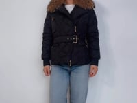 Moncler Black Virginia Quilted Fur Hood Belted Coat RRP £1000 | Authentic Preloved