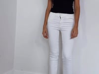 These skinny cropped jeans by Mother featuring a frayed hem on the leg, M logo stitched to the back pockets, zip and button waistline and are high waisted.