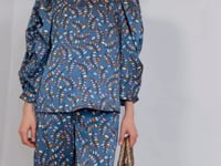 -The blouse showcases elegant balloon sleeves and a discreet back-neck button closure, whilst the accompanying piece completes the ensemble.