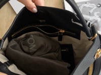 -The interior is lined with a cream canvas, with a spacious size it is designed with a smaller zip pocket for daily use.