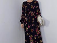 -The dress has an enchanting pink and yellow flower motif on timeless black base.