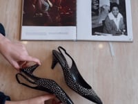 -Designed with pointed toe and elasticated slingbacks for a secure and elegant fit.