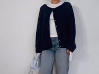 -This Sezane Mohair Cardigan combines a deep navy base with delicate white buttons for a subtle contrast.