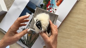 -The charm has the faux fur and vegan leather sunglasses detailing.