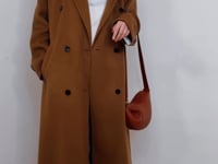 -Crafted from premium wool, this double-breasted design exudes timeless elegance with its distinctive large brown marbled buttons that add a luxurious finishing touch.