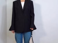 -This is the most stunning Valentino Black Single-Breasted Blazer with smart lapels, matching black buttons and flute sleeves.