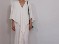 -The striking V-neck silhouette flows into a dramatic cape-style top, creating an ethereal silhouette with impeccable drape.