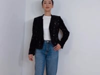-This blazer a rounded neck and shimmering sequins all over to elevate the look.